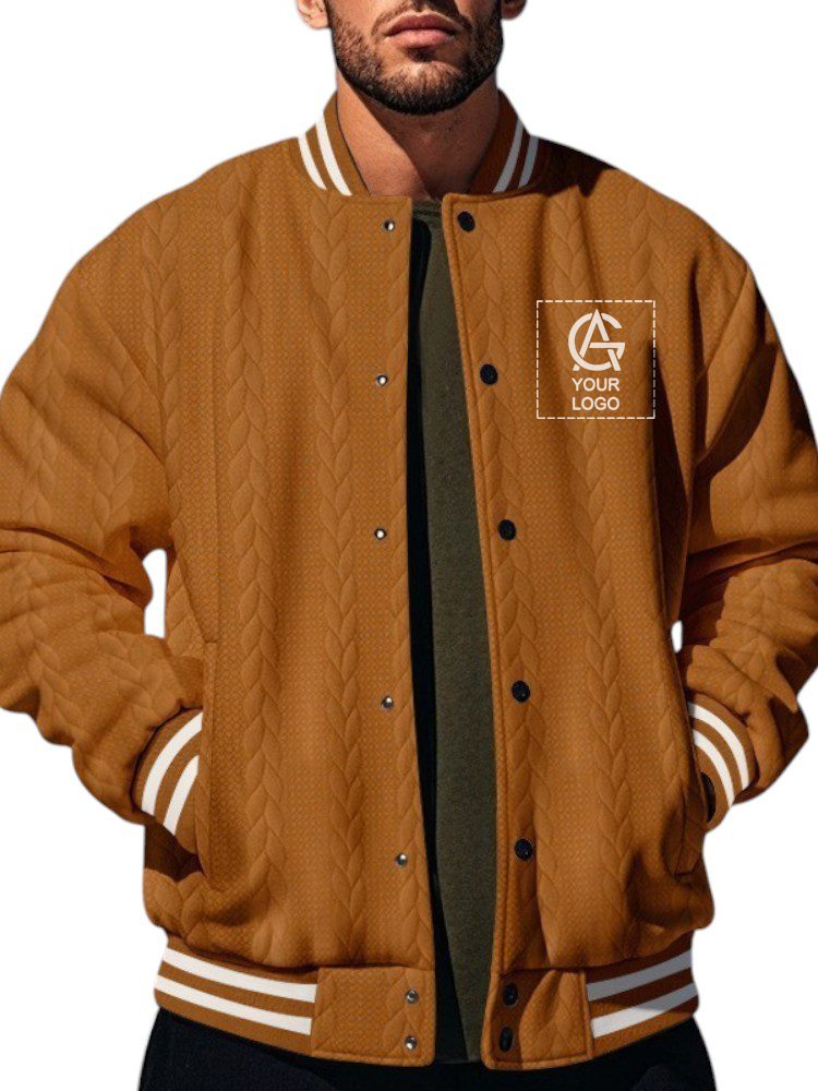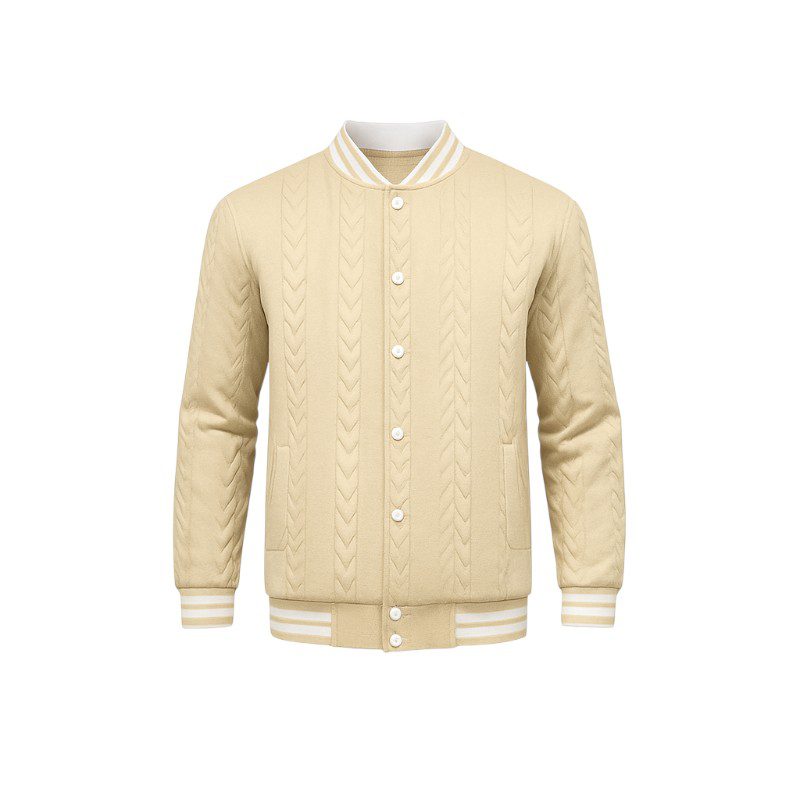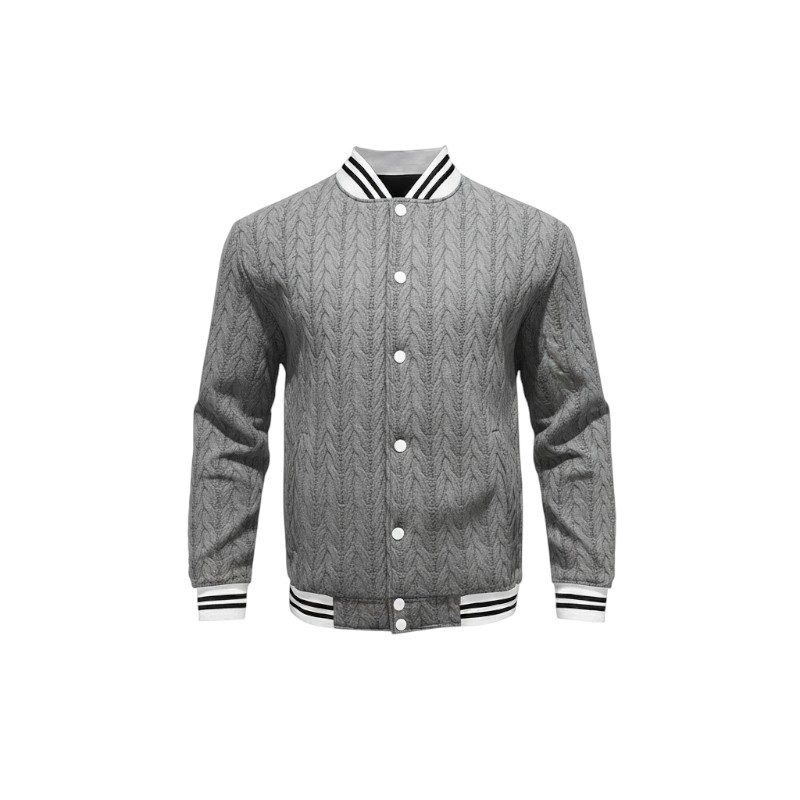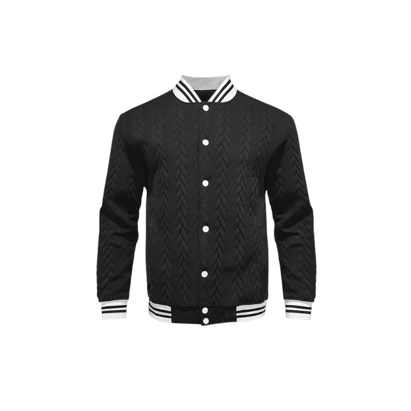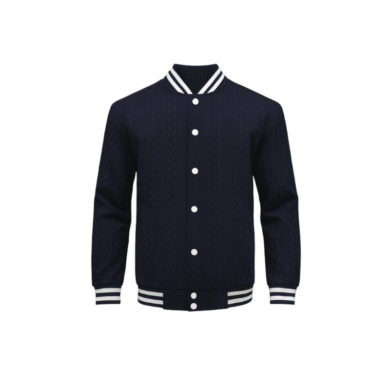 This stylish varsity-style bomber jacket combines a modern European fit with a unique knitted-texture fabric pattern. Designed for comfort and everyday wear, it offers a warm, lightweight feel—perfect for autumn and spring seasons. The jacket provides a clean, sporty look while ensuring freedom of movement and all-day comfort.